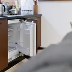Riga Premium - Ground Floor With Separate Entranceアパ-トの部屋は冷蔵庫,料理用レンジ上部と台所用品があります. Baznicas ielaバス停は,約150メ-トル離れた所にあります.